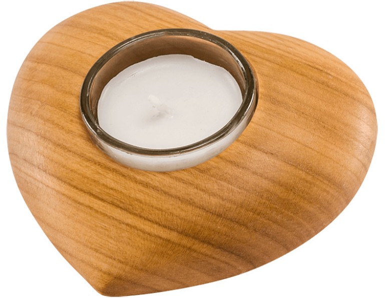 Gedenkartikel Kirsche, Herz, mitTeelicht, Fach und Schraubverschluss