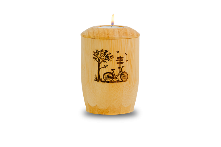 Gdenklicht Bambus (9x9x13cm) Baum mit Fahrrad