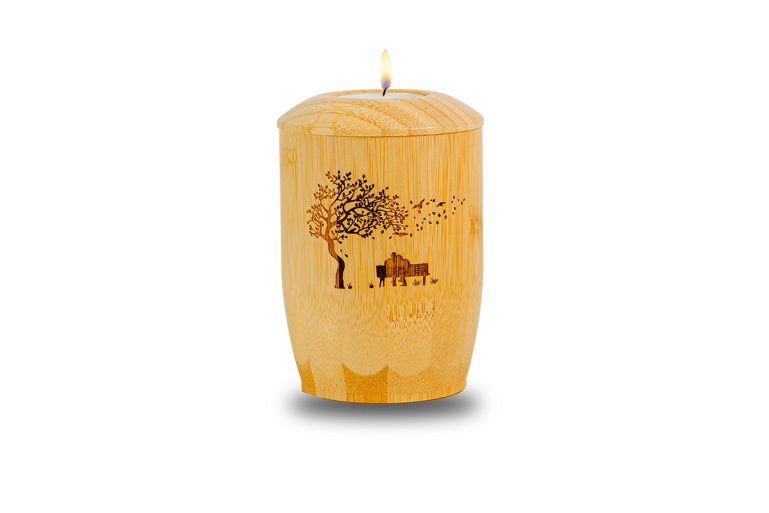 Gdenklicht Bambus (9x9x13cm) Baum mit Bank mit Pärchen