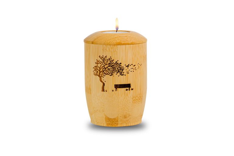 Gdenklicht Bambus (9x9x13cm) Baum mit Bank