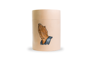 Edition Poesie, Porzellan-Gedenklicht, Dekor Bergkreuze mit Trauertext, perlmutt champagner