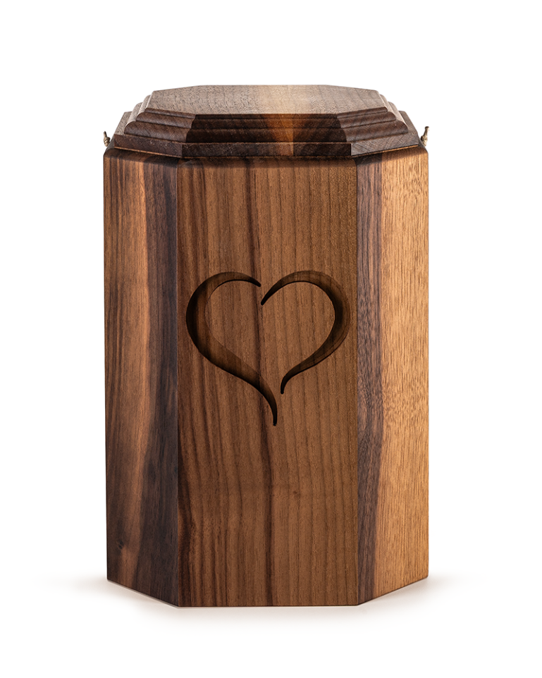 Schmuckurne Nuss, Herz Fräsung