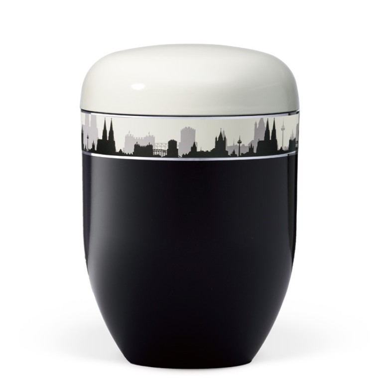 Korpus Schwarz, Deckel Weiß, Dekorband Skyline Köln