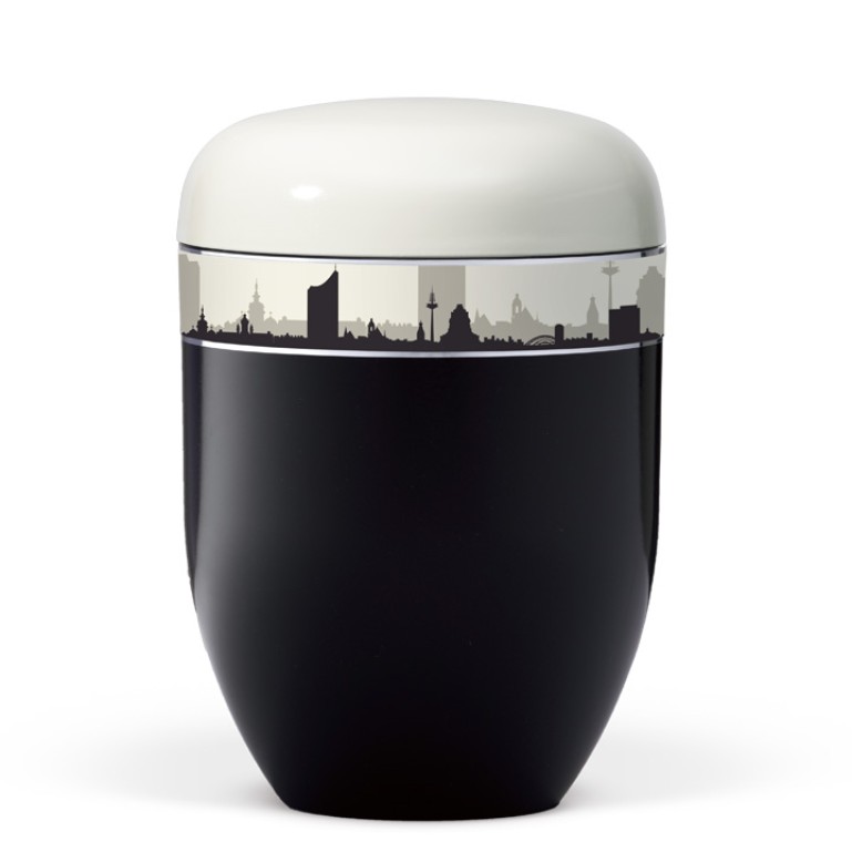 Korpus Schwarz, Deckel Weiß, Dekorband Skyline Leipzig
