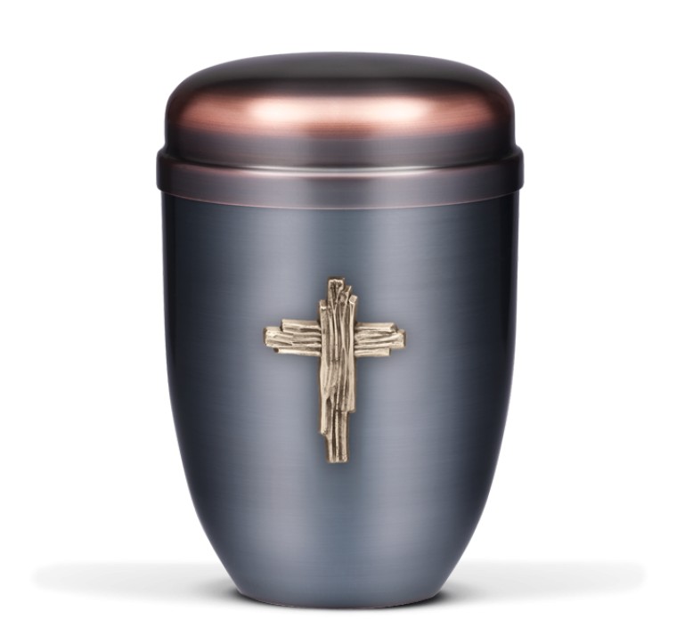 Kupferurne - Dunkel galvanisch, Modernes Messing Kreuz