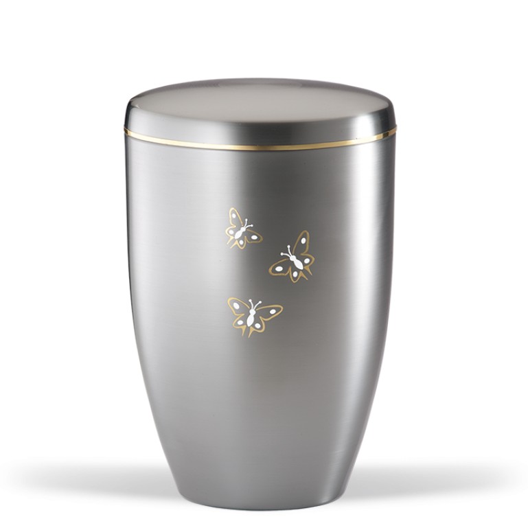 Stahlurne - ZIHESTA, "Schmetterlinge" Weiß-Gold Glänzend, Goldband