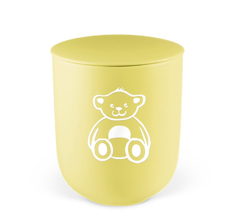 Keramikurne Kleinurne, Gelb, Dekor "Teddybär" Weiß