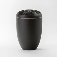 Urne tiefschwarz, Samt-matt lackiert, Dekorring in Weißgold