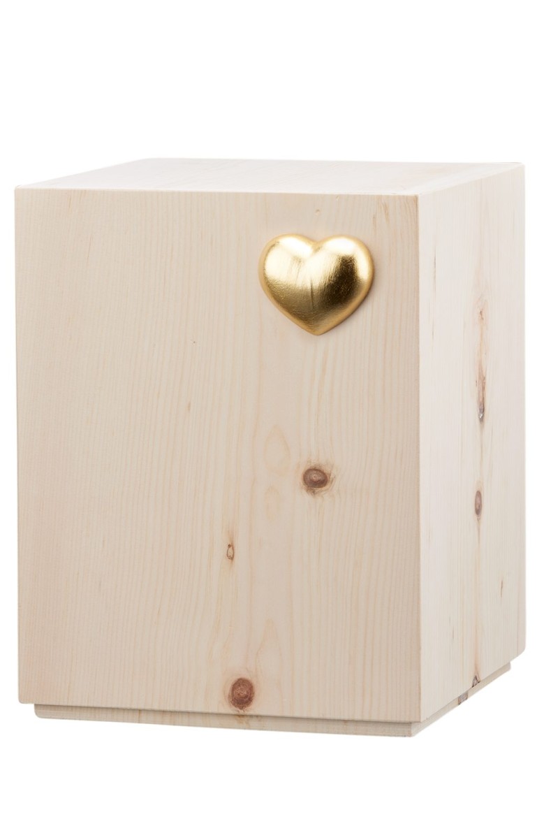 Urne Silenzio Zirbel mit cuoricino gold - 27x21x21 (4L)