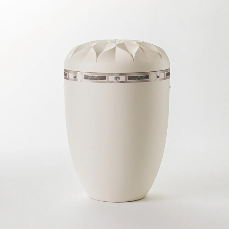 Urnen-Variante 'Apfelblüte' cremeweiß | Silberornament 'Art Déco'
