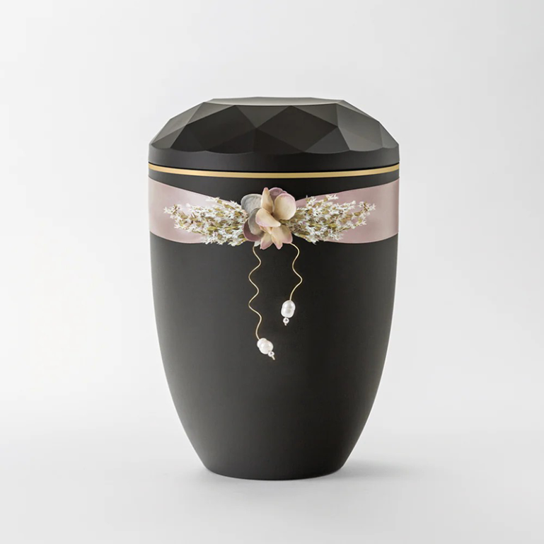 Urnen-Variante 'Diamant' anthrazit | Satinschmuck mit Perlen
