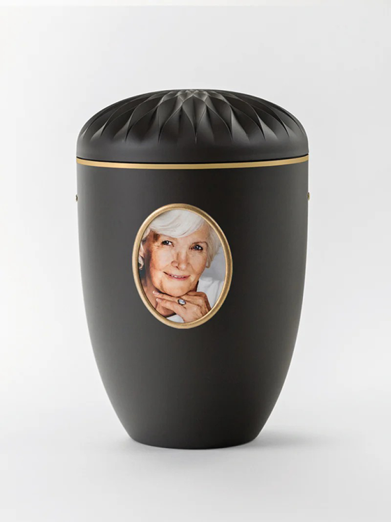 Urne „Dahlie“ anthrazit | Urnen-Bilderrahmen, mit Bilderservice