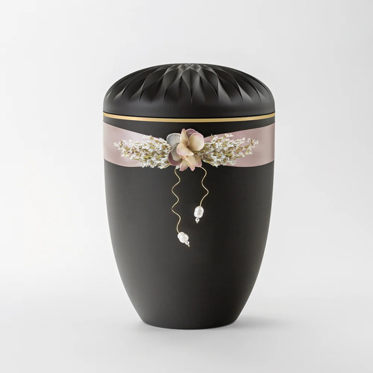 Urnen-Variante 'Dahlie' anthrazit | Satinschmuck mit Perlen