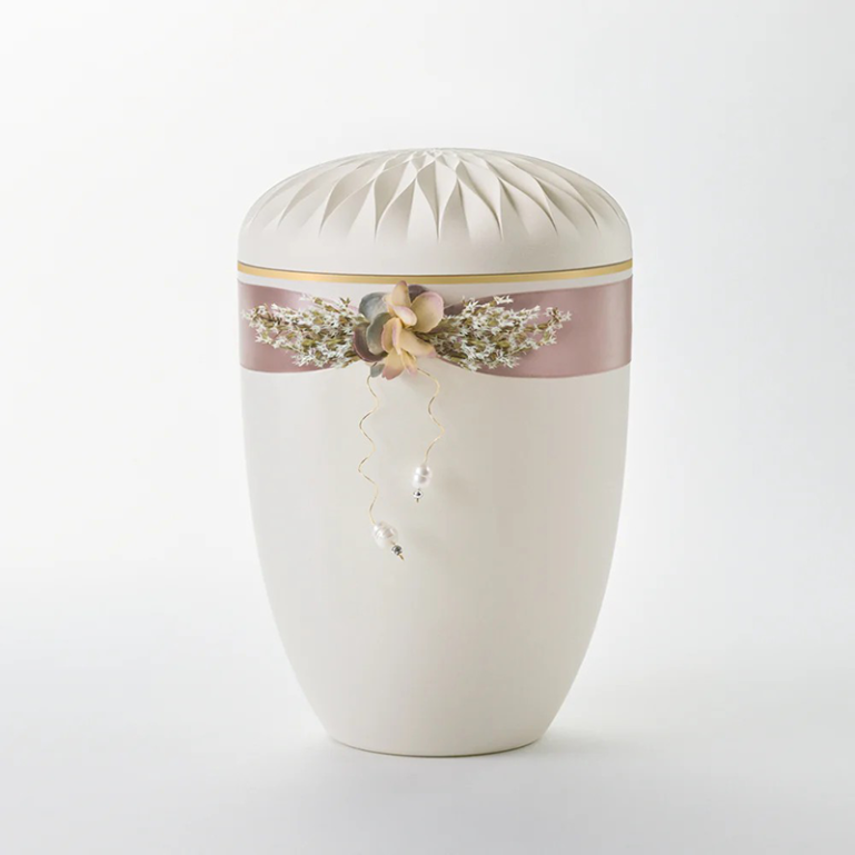 Urnen-Variante 'Dahlie' cremeweiß | Satinschmuck mit Perlen