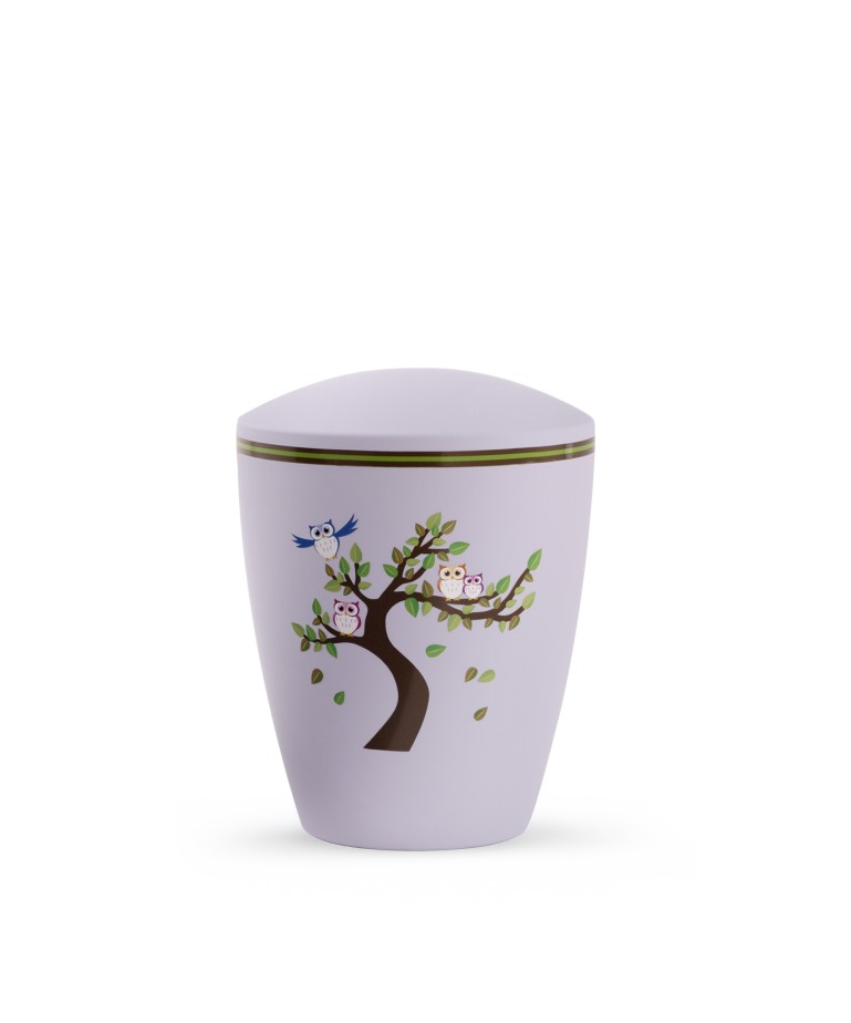Kinderurne, pastellfarben, Flieder, Baum mit Eulen